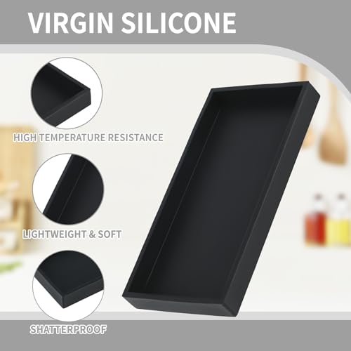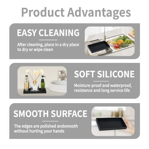 2er Set Deko Tablett für Badezimmer, Schwarz, Silikon, Rechteckig, tablett schwarz rechteckig, tablett Badezimmer, Geeignet für Küche und Bad
