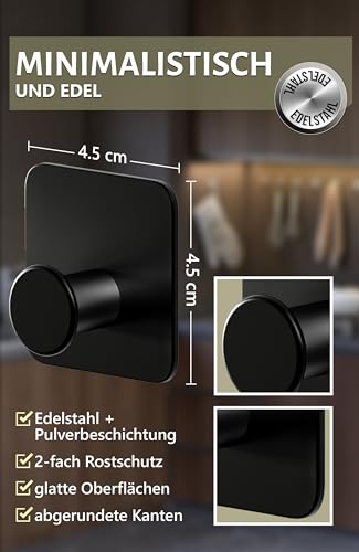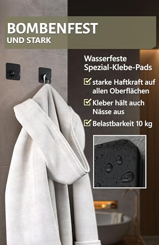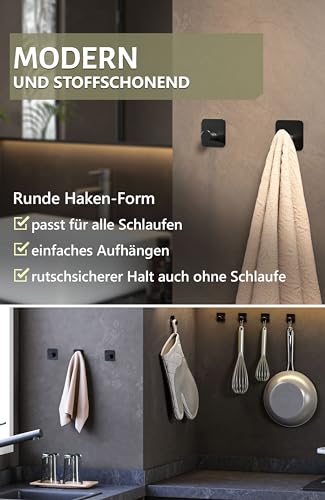 𝟱 𝗦𝘁ü𝗰𝗸 𝗛𝗮𝗸𝗲𝗻 𝘇𝘂𝗺 𝗞𝗹𝗲𝗯𝗲𝗻 – Schwarze Haken ohne Bohren mit hoher Tragkraft als funktionale Handtuchhalter im Bad; modernes Design.