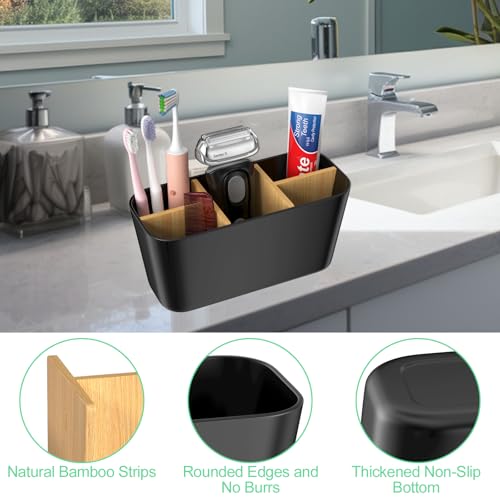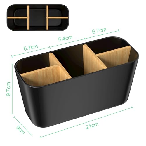 Noxtioanip Toothbrush Holder, Zahnbürstenhalter mit Bambus Trennwände, 5 Fächer Multifunktional Elektrische Zahnbürste Halterung, Bad Accessoires, für Büro, Wohnzimmer, Eitelkeit Countertop (Schwarz)