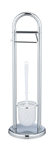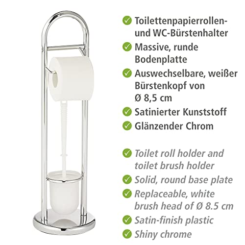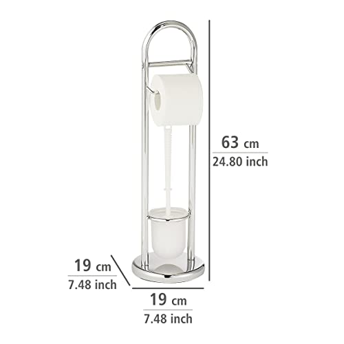 WENKO Stand WC-Garnitur Mod. Siena, Ständer für Toilettenpapier & Toilettenbürste, WC-Papierhalter, stehender Rollenhalter inkl. Bürste, Stahl, Ø 19 x 63 cm, Chrom
