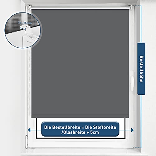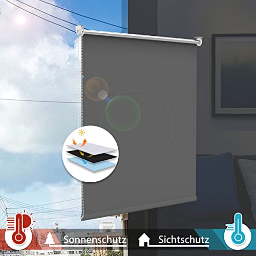 bobodeco Verdunklungsrollo ohne Bohren & mit Bohren, Verdunkelungsrollo Klemmfix, Dunkelgrau 85x120cm (BxH), Thermorollo Sichtschutz und Sonnenchutz, Rollos Hitzeschutz für Fenster & Tür