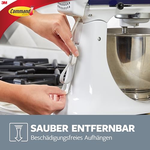 Command Kabelhänger – 2 Kabelhalter und 3 mittelgroße Klebestreifen, Weiß/Grau – Zum sicheren und beschädigungsfreien Aufhängen und Organisieren von Kabeln, Drähten und Leitungen