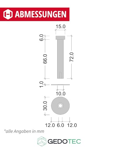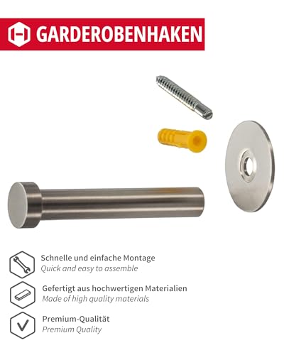 besonders einfache, stabile & schnelle Montage im Holz, Beton, Kleider-Schrank, Wand-Paneel, – Tiefe: 72 mm – Haken-Ø: 10 mm – Rosetten-Ø: 30 mm
