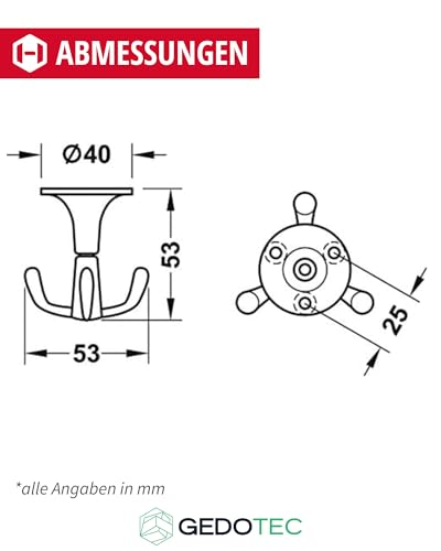 Gedotec Kleiderhaken Garderobe Dreifachhaken drehbar – Pegasi | Haken 3-fach | Drehhaken Küche & Schrank | Chrom poliert | Aluminium Garderobenhaken dreifach | 2 Stück – Unterbauhaken Decken-Montage