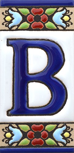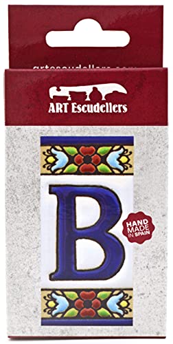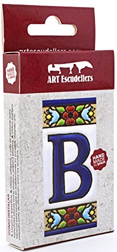 ART ESCUDELLERS Schilder mit Zahlen und Nummern auf Keramikkachel. Handgemalte Kordeltechnik Fuer Schilder mit Namen, Adressen und Wegweisern. Design Flores Mini 7,3 cm x 3,5 cm (Buchstaben B)