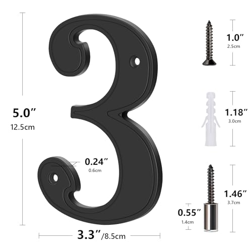 Emotionlite Hausnummern 3, 12,7 cm, Zinklegierung, Vintage-Hausnummern für außen und innen, schwarz