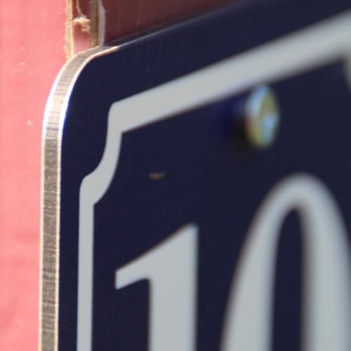 Als Hausnummer, Gartennummer oder auch Garagennummer kann man diese speziell auf Ihre eigenen Nummer personalisierten Schilder verwenden. Im Stil der alten Zeit drucken wir das Hausnummernschild mit maximal 3 Zeichen auf 2mm starkes Aluverbund Material mit einer auswählbaren Untergrundfarbe. Zur Befestigung mit Schrauben zum Beispiel am Gartentor oder am Zaun sind 2 Löcher vorgebohrt. Die Ecken des 10×10 cm großen Schildes sind leicht abgerundet, damit keine Verletzungsgefahr durch spitze Kanten vorhanden ist. Das Schild wird im modernen UV-Direktdruck hergestellt, es ist durch die verwendeten lösemittelhatigen Farben lange UV-stabil und selbstverständlich auch wetterfest. Über „jetzt anpassen“ können Sie das Schild gestalten.