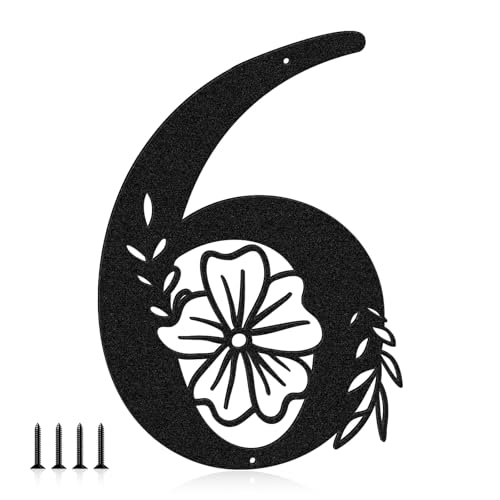 Hausnummern für draußen, 25,4 cm, schwarze Edelstahl-Hausnummern, Adressnummern, Buchstaben für Hausdekoration, florales Adressschild, Metall, moderne Adressbuchstaben für den Außenbereich (6)
