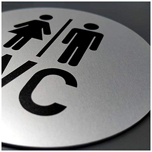 Aluminium Türschild. Das Schild besteht aus 1,5 mm eloxiertem Aluminium in runder Ausführung (100mm Ø). Das Motiv ist Schwarz matt und wurde mit einer speziellen Drucktechnik auf die Aluminiumoberfläche übertragen. Der Druck ist beständig und kratzfest! Angebracht wird das Türschild mit einem auf der Rückseite vorhandenen Klebepad.