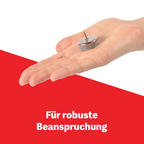 Möbelgleiter aus hochdichtem Filz, bietet eine 5mm dicke Schutzbarriere. Von einer Scheibe umschlossen für verdeckte Schraubbefestigung. Die Möbel werden um insgesamt 10 mm über den Boden gehoben.