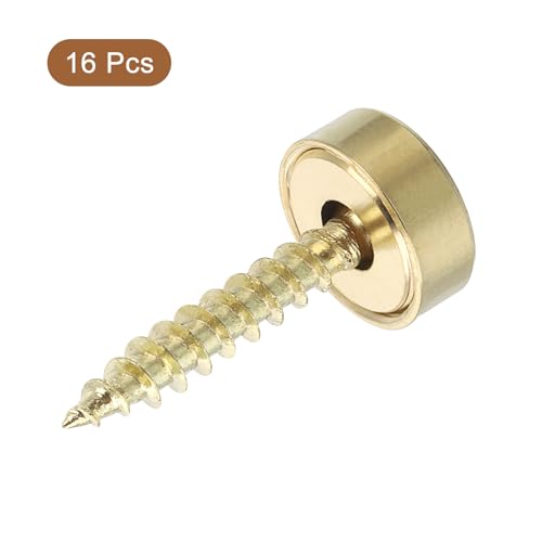 QUARKZMAN 16 Stück Messing Dekorative Schrauben mit Kappen, 12 mm Spiegelschrauben Abdeckung Selbstschneidende Schrauben zur Möbelbefestigung, Gold