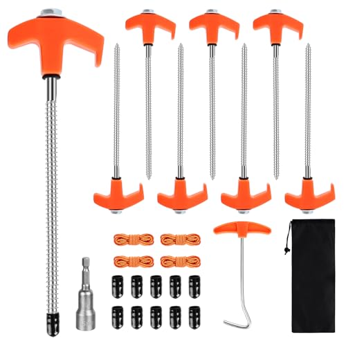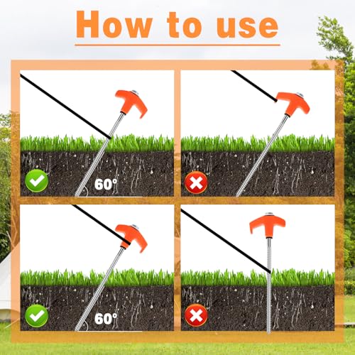 Einfacher Aufbau: Diese Zeltheringe mit Gewinde lassen sich leicht von Hand in den Boden eindrehen. Egal, ob es sich um Gras, hart gepackten Schmutz oder Kies handelt, es geht blitzschnell, so dass Sie Ihr Zelt schnell aufbauen können und mehr Zeit für Ihre Familie haben, um die Natur zu genießen