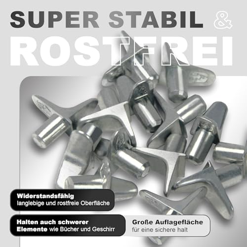 ✔️EXTREM LANGLEBIG – Unsere stabilen Bodenträger für Ihre Regale und Schränke sind perfekt für die besonders langlebige, robuste und formschlüssige Verarbeitung! Überzeugen Sie sich selbst von unserem Ø5 mm Regalbodenhalter mit Auflage!