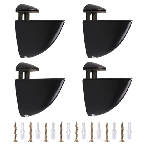 HAPPOW 4 Stück Glasbodenträger, Glashalter Schwarz, Glasregal Halterung für 2-22 mm Regalboden Glas und Holzböden, Glasklemme aus Zinklegierung Material, Spiegelhalter für Wohnzimmer, Bad und Küche