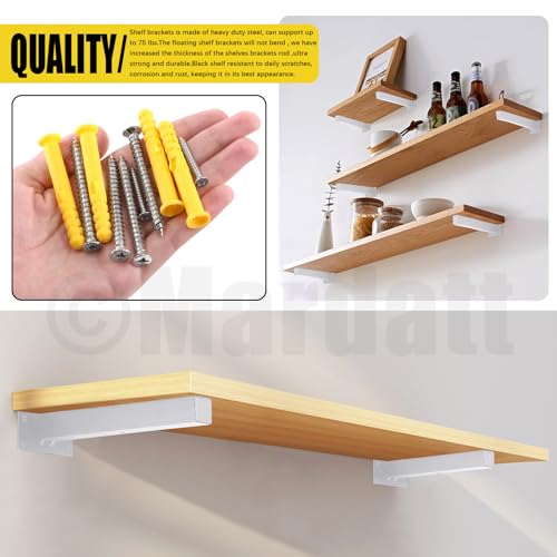 Mardatt 4Pcs 8In White Shelf Bracket with Screws and Anchors, Floating Shelf Brackets Heavy Duty Shelf Supports Mounted Shelf Brackets Hidden L Shelf Bracket for Shelves Support