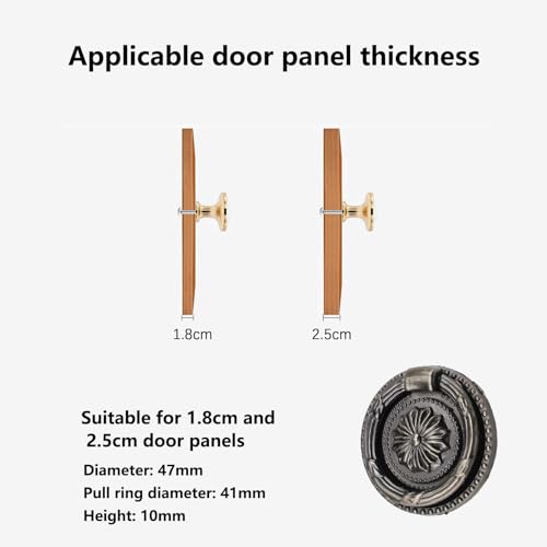 Produktliste: Das Paket enthält 6 vintage schrankknöpfe mit einem Durchmesser von 46 mm/1,8 Zoll, einer Zugringlänge von 4 mm/1,6 Zoll und wird mit 22 mm/0,86 Zoll und 30 mm/1,18 Zoll Schrauben geliefert, um Ihre Installation zu erleichtern.