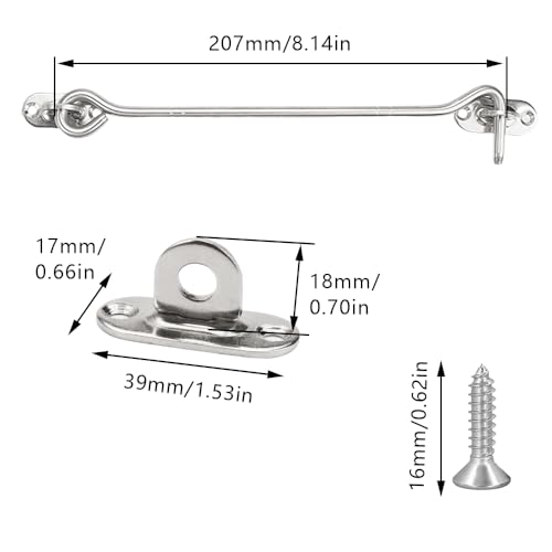 Menge und Größe: Paket enthält 2pcs sturmhaken, 2 Ösenverschlüsse, 8pcs Schrauben; kabinenhaken Länge 207mm/8.14in, komplettes Zubehör, einfache Installation