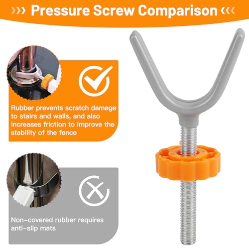 [Hochwertiges Material]: Die Druckschrauben sind aus Stahlkernschrauben und ABS-Kunststoff hergestellt, der stark, rostfrei, stabil und langlebig ist. Ausgestattet mit Gummienden, die nicht nur effektiv verhindern, dass Treppen und Wände zerkratzt und beschädigt werden, sondern auch die Reibung erhöhen, um die Stabilität des Zauns weiter zu verbessern.