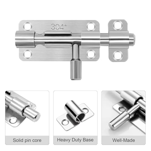 Hochwertige Materialien: Edelstahl Bolzenriegel Besteht aus Hochwertigem Edelstahlmaterial 304, das Sstark, Langlebig, Rostfrei und Korrosionsbeständig ist. Schönes Aussehen, Anpassungsfähig an Verschiedene raue Umgebungen und Wetterbedingungen und kann über einen Langen Zeitraum Drinnen und Draußen Verwendet Werden