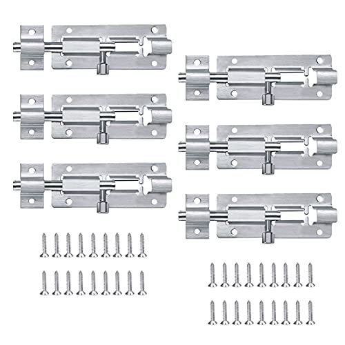 Türriegel Edelstahl, Riegelschloss Klein, 6 Stück 3 inch Türriegel, Riegel Schieberiegel,Edelstahl riegelschloss, Tür Riegel Schiebeschloss Für Gartentor Flächenbündige Türen mit Schrauben