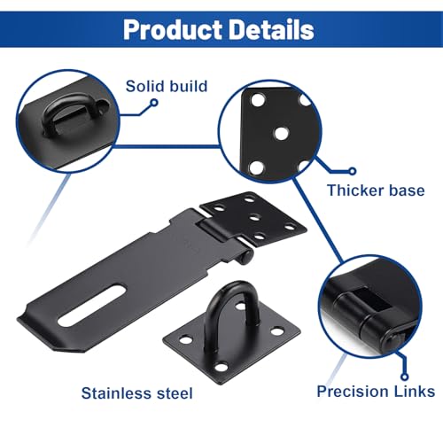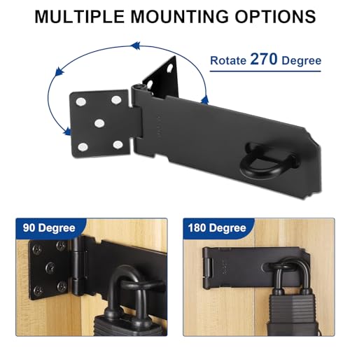 【Einfach zu installieren】Vorhängeschloss haspe die Installation ist sehr einfach. Schließen Sie zunächst die Tür und halten Sie den Riegel waagerecht. Dann markieren Sie die Löcher auf der Tür und dem Türrahmen und befestigen den Schieberiegel mit den mitgelieferten Schrauben.