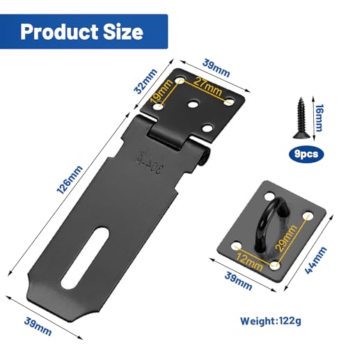 【Packungsinhalt】Jedes Set enthält 1 Stück vorhängeschloss haspe, jede Packung kommt mit 9 Schrauben, Stil 1 Vorhängeschloss misst 126cm lang und 39cm breit; Stil 2 Vorhängeschloss misst 105cm lang und 39cm breit.Robuste und langlebige Türschlösser sind für die meisten Arten von Türen oder Schränken geeignet, geeignet für den täglichen Gebrauch.