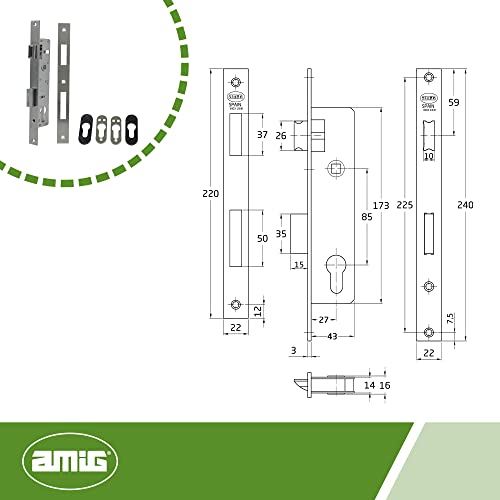 Be the first to review “Amig Einsteckschloss für Holzbearbeitung aus Metall, Modell 720E | 27 mm | für Zylinder mit Nockenprofil von 15 mm | Wendbarer Türgriff | Edelstahl”