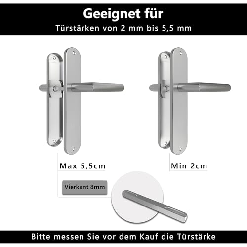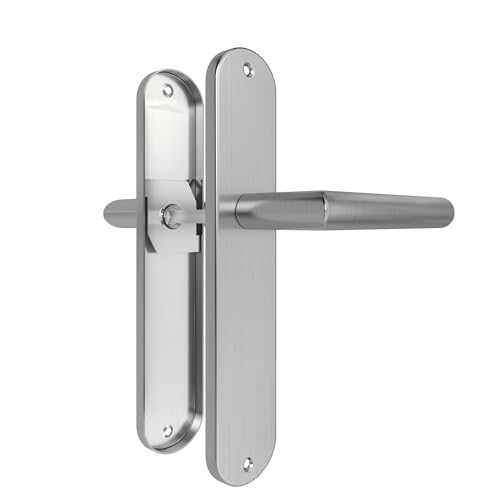 ➤ Klassische Form in modernem Design 2 Türklinken inklusive 2 Langschild, Riegel, Montage-Material und deutscher Anleitung Für alle gängigen Zimmertüren geeignet Langschild mit Sperr-Riegel