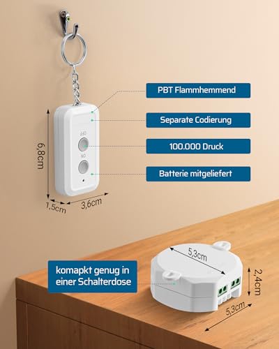 [Kompakter Wandschalter-Set] Montagehalterung vorhanden; abnehmbare Fernbedienung bietet mehr Flexibilität; kompaktes Empfänger, platzsparend,geeignet für meiste Unterputzdose und Verteilerkasten; Ihr Beleuchtungssystem frei erweitern und das bestehende System nicht beeinträchtigen