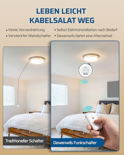 [Programmierbar & Erweitbar] Das Funklichter-Set lässt Sie zusätzliche Empfänger, Lichtschalter, Funksteckdose und Fernbedienung hinzufügen (nur beim gleichen Modell von DEWENWILS); einfaches Anlernen; weiße Optik geeignet für meiste Raumdekor