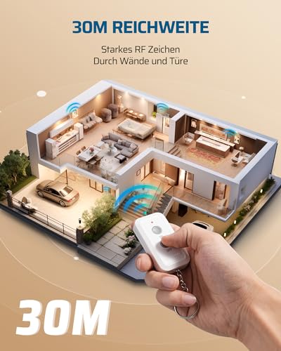 [30M Reichweite] Starkes RF Zeichen funktioniert durch Wände und Türe ohne Interferenz; bis zu 30 Metern Reichweite in der Freifläche; es funktioniert richtig ohne Sichtstrecke; nicht mehr aufzustehen, um Licht auszuschalten