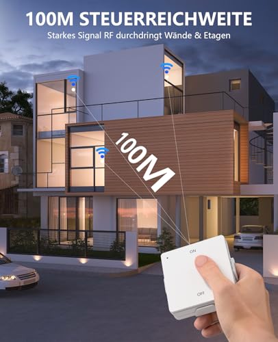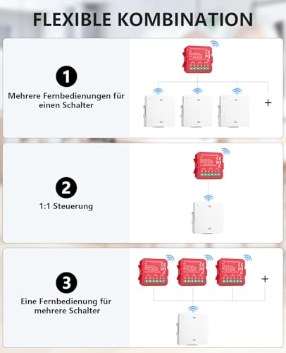ZUVERLÄSSIGE QUALITÄT: Jeder Sender ist mit einer 3V CR2032 Knopfzelle ausgestattet die eine Lebensdauer von bis zu 2 Jahren hat. Das Relais unterstützt einen maximalen Strom von 10A und funktioniert mit einer Spannung von 100 bis 240V was eine erweiterte Kompatibilität und stabile Leistung gewährleistet.