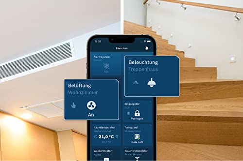 Einfache Bedienung: Steuerbar direkt am angeschlossenen Schalter, per Sprache (Amazon Alexa, Google Assistant, Siri), über individuelle Szenarien, Automationen, Zeitprogramme oder via App