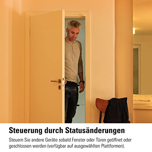 Erhalten Sie Mitteilungen, um unterwegs informiert zu bleiben/erstellen Sie Automationen um andere vernetzte Geräte zu steuern, sobald Fenster/Türen geöffnet/geschlossen werden (verfügbar auf ausgewählten Plattformen)