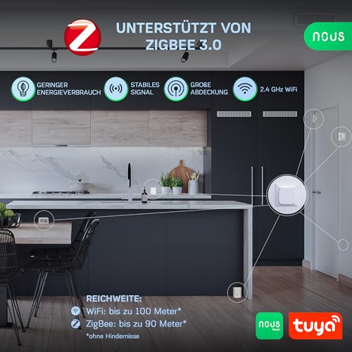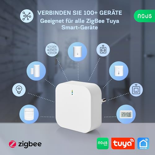Das NOUS Zigbee 3.0 Gateway ist die perfekte Lösung für eine smarte, vernetzte Steuerung Ihres Zuhauses. Es verbindet und verwaltet über 100 Zigbee-fähige Geräte, darunter Sensoren, Schalter, Steckdosen und vieles mehr. Mit der Nous Smart Home App behalten Sie jederzeit die volle Kontrolle – egal, ob zu Hause oder unterwegs. Dank der dualen Konnektivität über Zigbee 3.0 und WLAN bietet das Gateway eine zuverlässige, stabile Verbindung mit großer Reichweite. Zigbee-Geräte kommunizieren direkt mit dem Hub, während die Steuerung über 2,4 GHz WLAN erfolgt. So erhalten Sie eine schnelle und energieeffiziente Smart-Home-Integration. Mit einer Reichweite von bis zu 160 m im Zigbee-Netzwerk und 100 m über WLAN (im freien Gelände) ermöglicht das Gateway eine stabile und sichere Verbindung, auch in großen Wohnbereichen. So bleiben Ihre Smart-Home-Geräte jederzeit verbunden und einsatzbereit. Das NOUS Gateway ist kompatibel mit Alexa und Google Assistant, sodass Sie Ihre Smart-Home-Geräte bequem per Sprachbefehl steuern können. Schalten Sie Lampen ein, aktivieren Sie Sensoren oder automatisieren Sie Szenarien – alles ganz einfach über Ihre bevorzugte Sprachsteuerung. Dank seiner kompakten Bauweise (56x56x23 mm) und einem Gewicht von nur 53 g passt das Gateway in jede Steckdose, ohne Platz zu beanspruchen. Das hochwertige ABS-Gehäuse sorgt für Langlebigkeit und Sicherheit im täglichen Einsatz. Verwandeln Sie Ihr Zuhause in ein intelligentes, vernetztes Smart Home mit dem NOUS Zigbee 3.0 Gateway – die ideale Lösung für eine zentrale, effiziente und zuverlässige Steuerung Ihrer Smart-Home-Geräte!