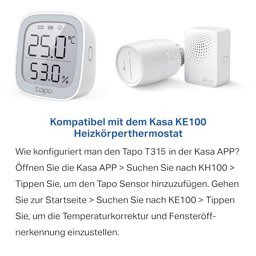 TP-Link Tapo T315 Smart Home Temperatur und Luftfeuchtigkeitsmesser,digitales Thermo-Hygrometer Innen, Raumthermometer mit 2.7“ E-Ink Display, Hochpräzisionssensor, Hub erforderlich