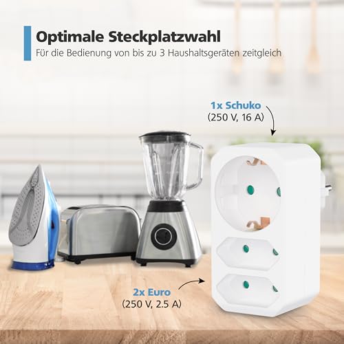 benon 2er Set Mehrfachstecker Weiß – Steckdosen-Adapter mit Kindersicherung – Doppelstecker 3680W – Multistecker 3Fach – Mehrfachsteckdose 2 Euro und 1 Schuko – Stecker mit Schutzkontakt Steckdose