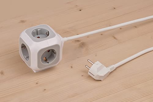 Steckdosenwürfel mit 4 Steckdosen eignet sich ideal als eine platzsparende Stromquelle, ganz egal ob auf dem Schreibtisch oder auch auf Reisen (Schutzkontakt-Stecker)