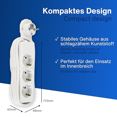Robust & sicher: Das Gehäuse der Mehrfachsteckdosenleiste ist aus schlagzähem Kunststoff – perfekt für den Einsatz zu Hause oder im Büro. Mit erhöhtem Berührungsschutz