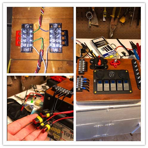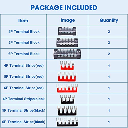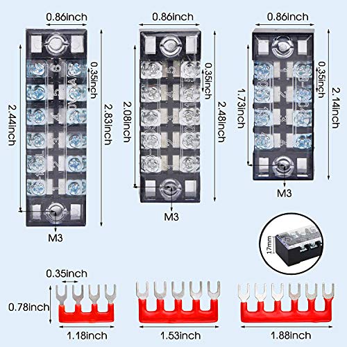 Einfache Installation: Die Klemmleisten sind einfach zu installieren und durch zwei Schraubenlöcher an jedem Ende des Terminals an Ort und Stelle zu halten. Das Band der Gabelklemmen kann in jeder Position geschnitten werden, um Ihren verschiedenen Anforderungen gerecht zu werden. Nachdem die Verbindungen durchgeführt wurden, sind transparente Kunststoffabdeckungen enthalten, die das Schloss an Ort und Stelle drücken, um die Klemmen zu schützen.