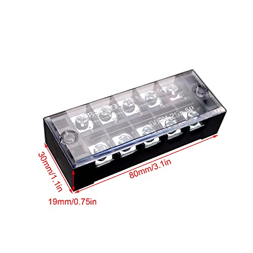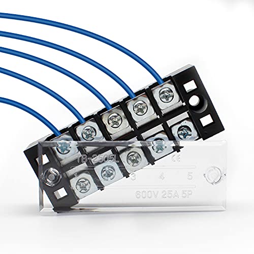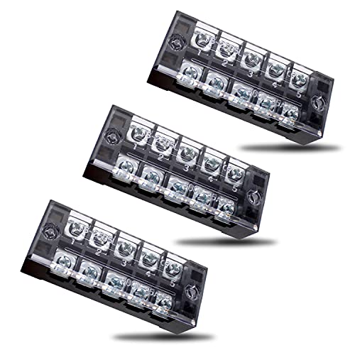 SRJQXH 3 Stück 5 Bit Schraubklemmenleiste Set, 600V 20A Zweireihige Schraubklemmen, Vorisolierte Terminal Barrier Strip mit Schutzhülle, für Haushaltsgeräte, Elektronische Schaltung