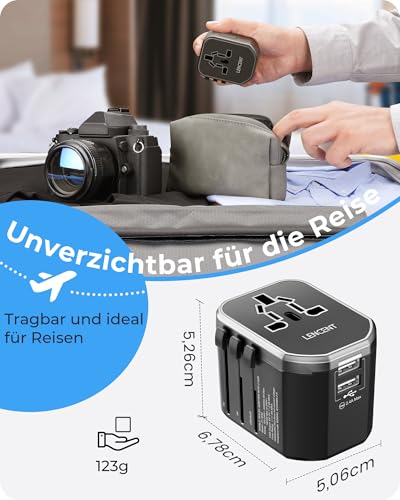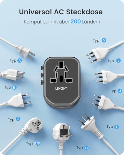 LENCENT Reiseadapter Weltweit, Universal Reisestecker mit 2 USB-A, Internationaler Steckdosenadapter, Travel Adapter über 150+ Länder für Australien USA UK Europa Japan Thailand Deutschland