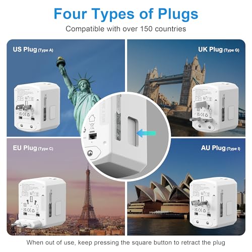 Kompakt und tragbar: Der Reiseadapter hat ein kompaktes All-in-One-Design, er ist ein unverzichtbarer Reiseadapter zum Mitnehmen, es gibt keine Notwendigkeit, zusätzliche Adapter oder Stecker zu tragen, was Platz in Koffern, Rucksäcken und Aktentaschen spart, so dass Sie einen perfekten Urlaub haben können, wenn Sie reisen