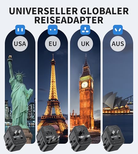 Sicher und Zuverlässig: Unsere Universal adapter bestehen aus hochwertigen feuerfesten ABS und PC-Materialien und haben die RoHs, CE und FCC-Zertifizierung bestanden. Es kann Ihre elektrischen Geräte vor Überstrom, Überlastung, Überspannung, Kurzschluss und Überhitzung schützen. Es verfügt über integrierte Doppelsicherungen (10 A), um Ihre Reise sicherer zu machen