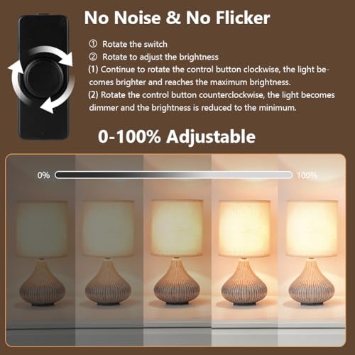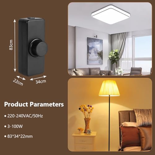 【ENERGIESPAREN UND AUGENSCHUTZ】 Der Inline-Dimmschalter kann die Mindesthelligkeit voreinstellen, um die Energiekosten zu senken, und bietet einen gleichmäßigen Dimmbereich von 0 bis 100 %. Kein Geräusch beim Einstellen des Knopfs, reibungslose Bedienung der Beleuchtung, flimmerfreies Dimmen, sodass sich Ihre Augen an Lichtveränderungen anpassen können, was die Augenermüdung verringert und Ihre Augen vor Schäden schützt.