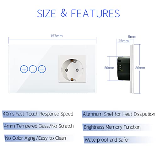 PANEL DESIGN: Aus stylischem Glas, um Ihrem Haus modernere Designelemente hinzuzufügen, Sinn für Technologie. Touchpanel, Starke/schwache blaue Status-LED zeigt das Ein/Aus. Es ist glatt und immer wie neu aussieht.