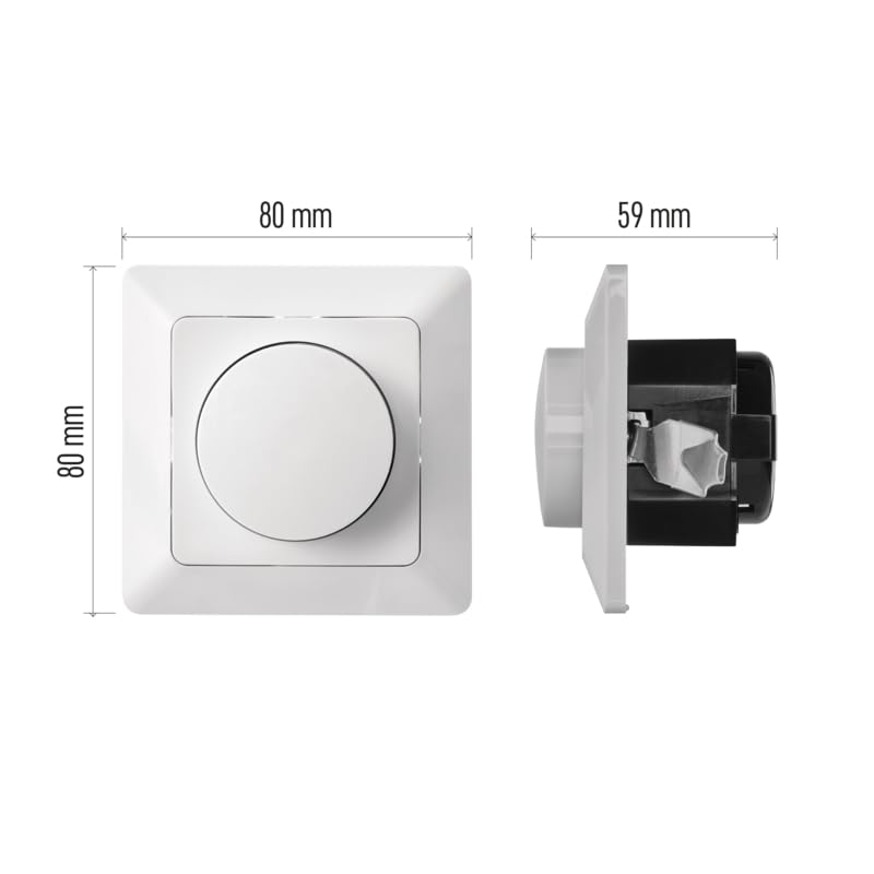 Unterputz-LED-Drehdimmer, kompatibel mit LED-Lampen, herkömmlichen Leuchtmitteln, 230V Glühlampen, Halogenlampen, Niedervolt-Halogenlampen und meisten dimmbaren Energiesparlampen