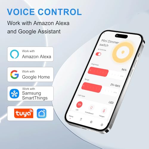 Sprachsteuerung: Dimmschalter funktioniert mit Alexa oder Google Home, Sie können Ihre Lichter per Sprache einstellen, Sie können die Lampen ein-/ausschalten, dimmen/erhellen und personalisierte Szenen erstellen.