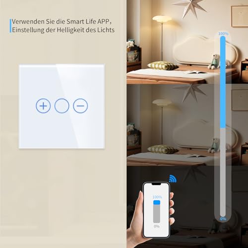 Liaonfoy WIFI Wlan Dimmschalter Unterputz Glas Touch Screen Schalter LED Dimmbar Lichtschalter Kipplichtschalter Weiß 90-250V 2.4GHz fuer Smart home Alexa tuya Neutralleiter Wird Benötigt