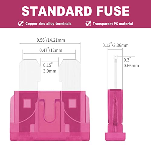 Dieser Sicherungssatz passt in die meisten modernen Fahrzeuge. Achten Sie jedoch aufgrund der Vielzahl von Fahrzeugen darauf, die richtige Ampere-Sicherung zum Schutz des Fahrzeugs und der elektronischen Geräte zu verwenden.